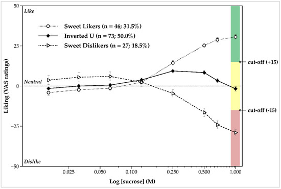 - Kim, J.-Y.; Prescott, J.; Kim, K.-O. Patterns of sweet liking in sucrose solutions and beverages. Food Qual. Prefer. 2014, 36, 96–103. [Google Scholar] [CrossRef]