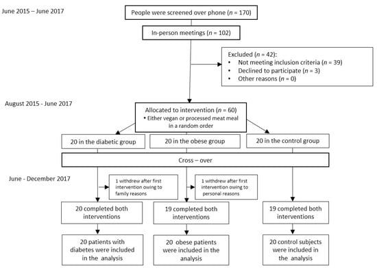 - Belinova, L.; Kahleova, H.; Malinska, H.; Topolcan, O.; Vrzalova, J.; Oliyarnyk, O.; Kazdova, L.; Hill, M.; Pelikanova, T. Differential acute postprandial effects of processed meat and isocaloric vegan meals on the gastrointestinal hormone response in subjects suffering from type 2 diabetes and healthy controls: A randomized crossover study. PLoS ONE 2014, 9, e107561. [Google Scholar] [CrossRef] [PubMed]