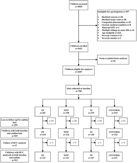 - Barffour, M.A.; Hinnouho, G.M.; Kounnavong, S.; Wessells, K.R.; Ratsavong, K.; Bounheuang, B.; Chanhthavong, B.; Sitthideth, D.; Sengnam, K.; Arnold, C.D.; et al. Effects of daily preventive zinc supplementation, daily supplementation with a high-zinc, low-iron containing multiple micronutrient powder or therapeutic zinc supplementation for diarrhea, on physical growth, anemia and zinc and iron status in rural Laotian children: A randomized controlled trial. J. Pediatr. 2018. [Google Scholar] [CrossRef]