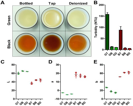 - Zhang, H.; Jiang, Y.; Lv, Y.; Pan, J.; Duan, Y.; Huang, Y.; Zhu, Y.; Zhang, S.; Geng, K. Effect of water quality on the main components in Fuding white tea infusions. J. Food Sci. Technol. 2017, 54, 1206–1211. [Google Scholar] [CrossRef] [PubMed]