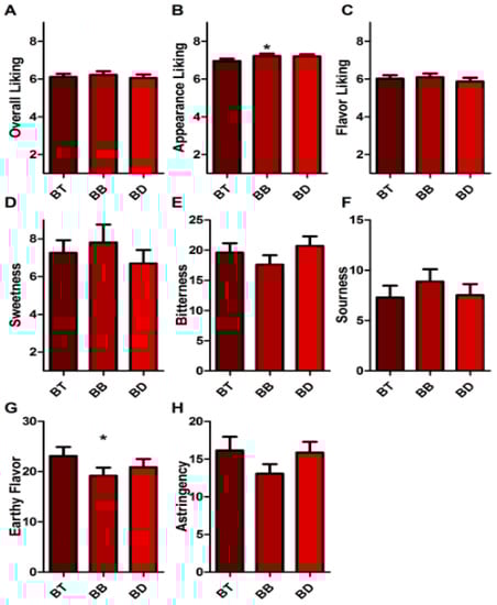 - Sugrue, M.; Dando, R. Cross-modal influence of colour from product and packaging alters perceived flavour of cider. J. Inst. Brew. 2018, 124, 254–260. [Google Scholar] [CrossRef]