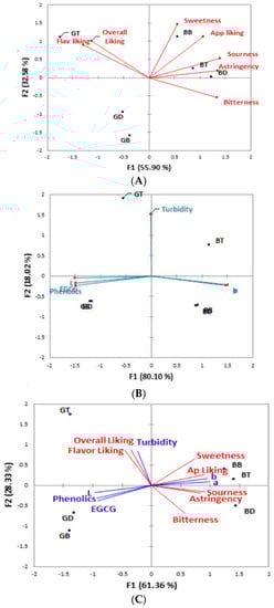 - Rossetti, D.; Bongaerts, J.H.H.; Wantling, E.; Stokes, J.R.; Williamson, A.M. Astringency of tea catechins: More than an oral lubrication tactile percept. Food Hydrocoll. 2009, 23, 1984–1992. [Google Scholar] [CrossRef]