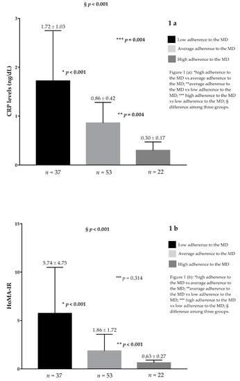 | High adherence to the MD | 22, 39.3% | 26, 46.4% | <0.001 |