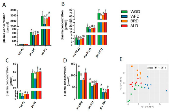 | C22:4n6 | 0.38 ± 0.02 a | 0.39 ± 0.03 a | 0.36 ± 0.02 b | 0.38 ± 0.01 ab |