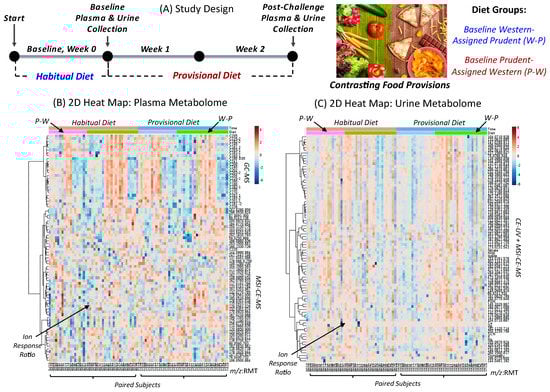 Wellington, N.; Shanmuganathan, M.; de Souza, R.J.; Zulyniak, M.A.; Azab, S.; Bloomfield, J.; Mell, A.; Ly, R.; Desai, D.; Anand, S.S.; et al. Metabolic Trajectories Following Contrasting Prudent and Western Diets from Food Provisions: Identifying Robust Biomarkers of Short-Term Changes in Habitual Diet. Nutrients 2019, 11, 2407. https://doi.org/10.3390/nu11102407