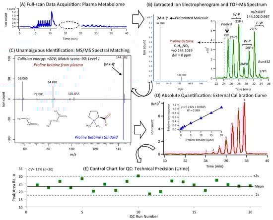 - Heinzmann, S.S.; Brown, I.J.; Chan, Q.; Bictash, M.; Dumas, M.E.; Kochhar, S.; Stamler, J.; Holmes, E.; Elliott, P.; Nicholson, J.K. Metabolic profiling strategy for discovery of nutritional biomarkers: Proline betaine as a marker of citrus consumption. Am. J. Clin. Nutr. 2010, 92, 436–443. [Google Scholar] [CrossRef]