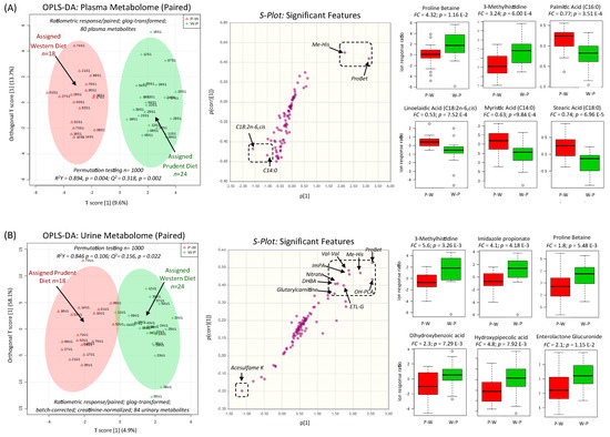 Chicago/Turabian StyleWellington, Nadine, Meera Shanmuganathan, Russell J. de Souza, Michael A. Zulyniak, Sandi Azab, Jonathon Bloomfield, Alicia Mell, Ritchie Ly, Dipika Desai, Sonia S. Anand, and et al. 2019. "Metabolic Trajectories Following Contrasting Prudent and Western Diets from Food Provisions: Identifying Robust Biomarkers of Short-Term Changes in Habitual Diet" Nutrients 11, no. 10: 2407. https://doi.org/10.3390/nu11102407