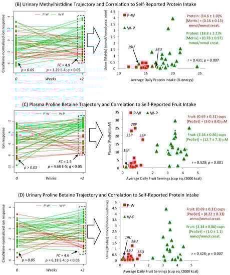 3.3. Biomarkers of Contrasting Diets and Correlation with Diet Records