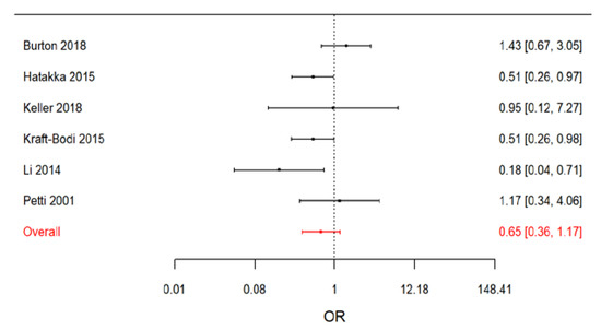 Rane et al. (2008) [61] reported the results of separated analyses conducted on three different samples of different age (50–59, 60–69, ≥70 years). A fixed-effects meta-analysis was performed on the three results in order to obtain an overall combined estimate and the corresponding standard error.