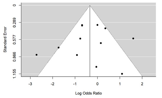 - Egger, M.; Davey Smith, G.; Schneider, M.; Minder, C. Bias in meta-analysis detected by a simple, graphical test. BMJ 1997, 315, 629–634. [Google Scholar] [CrossRef]