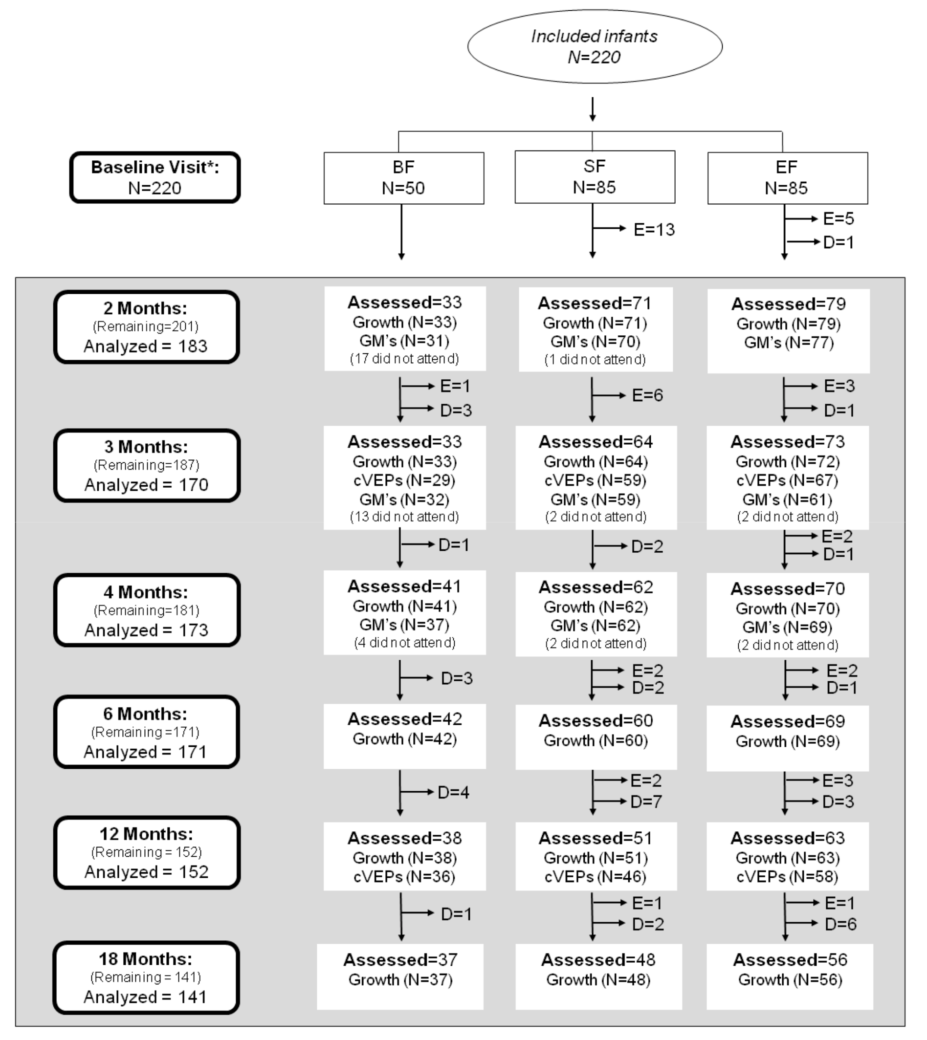 Nieto-Ruiz, A.; García-Santos, J.A.; Bermúdez, M.G.; Herrmann, F.; Diéguez, E.; Sepúlveda-Valbuena, N.; García, S.; Miranda, M.T.; De-Castellar, R.; Rodríguez-Palmero, M.; et al. Cortical Visual Evoked Potentials and Growth in Infants Fed with Bioactive Compounds-Enriched Infant Formula: Results from COGNIS Randomized Clinical Trial. Nutrients 2019, 11, 2456. https://doi.org/10.3390/nu11102456
