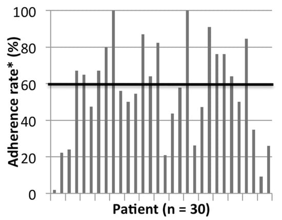 Patients’ adherence to the IDE program. * Moderate adherence: ≥60–80%; High Adherence: >80%.