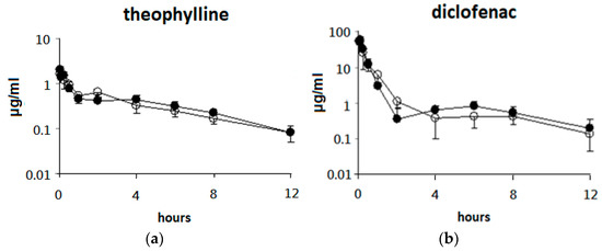 - Nosaka, H.; Takagi, K.; Hasegawa, T.; Ogura, Y.; Mizukami, Y.; Satake, T. Pharmacokinetics of theophylline in beagle dogs and asthmatic patients after multiple oral doses of sustained-release theophylline tablet formulation. Int. J. Clin. Pharmacol. Ther. Toxicol. 1986, 24, 528–535. [Google Scholar]