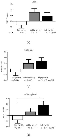 - Michaëlsson, K.; Wolk, A.; Byberg, L.; Ärnlöv, J.; Melhus, H. Intake and serum concentrations of α-tocopherol in relation to fractures in elderly women and men: 2 cohort studies. Am. J. Clin. Nutr. 2014, 99, 107–114. [Google Scholar] [CrossRef] [PubMed]