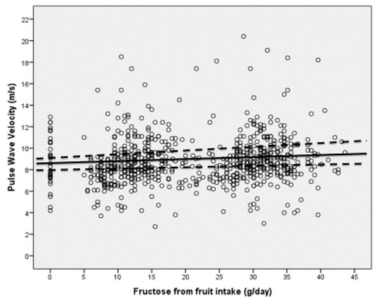 In conclusion, our data suggest that increased intake of fructose derived from industrial sweetened beverages, though not from fruits, seems to be harmful, being independently associated with higher pulse wave velocity. However, further research is required to clarify if a permanent decrease in the intake of fructose-sweetened beverages could be associated with an improvement in arterial function and/or slowing of arterial aging processes.