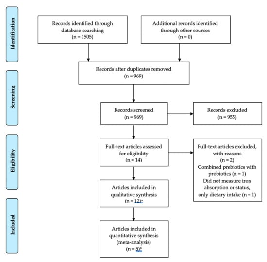 APA StyleVonderheid, S. C., Tussing-Humphreys, L., Park, C., Pauls, H., OjiNjideka Hemphill, N., LaBomascus, B., McLeod, A., & Koenig, M. D. (2019). A Systematic Review and Meta-Analysis on the Effects of Probiotic Species on Iron Absorption and Iron Status. Nutrients, 11(12), 2938. https://doi.org/10.3390/nu11122938