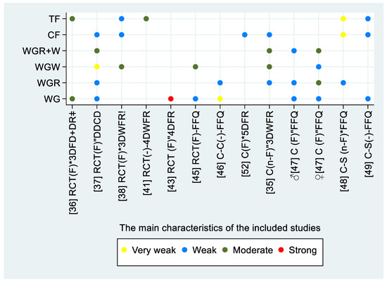 3.2. Quality Assessment and Assessment of the Risk of Bias in the Included Studies