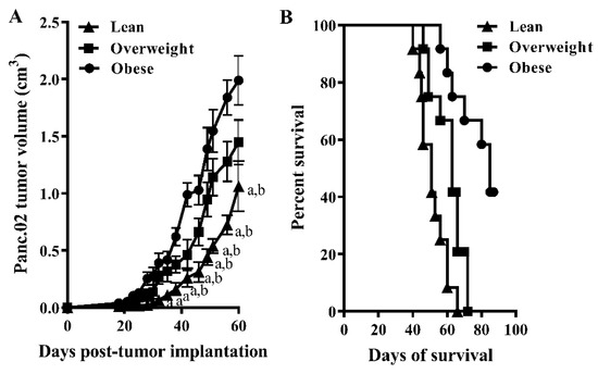 - Zyromski, N.J.; Mathur, A.; Pitt, H.A.; Wade, T.E.; Wang, S.; Nakshatri, P.; Swartz-Basile, D.A.; Nakshatri, H. Obesity potentiates the growth and dissemination of pancreatic cancer. Surgery 2009, 146, 258–263. [Google Scholar] [CrossRef]