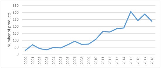 Figure 1 below presents the evolution of new breakfast cereals introduced into the UK market between 2000 and 2018. A positive trend can be observed from 2000 to 2015, with a particularly large number of products marketed during the period 2011 to 2015. However, in 2016 and 2018, there is a clear drop in the number of new products.