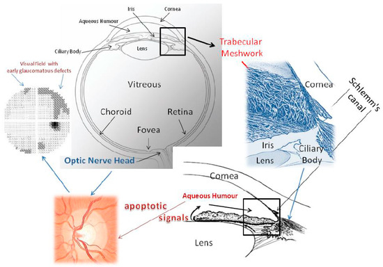 - Saccà, S.C.; Gandolfi, S.; Bagnis, A.; Manni, G.; Damonte, G.; Traverso, C.E.; Izzotti, A. The Outflow Pathway: A Tissue with Morphological and Functional Unity. J. Cell Physiol. 2016, 231, 1876–1893. [Google Scholar] [CrossRef] [PubMed]