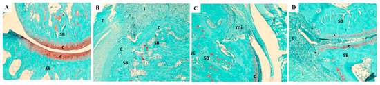 - Bolon, B.; Campagnuolo, G.; Zhu, L.; Duryea, D.; Zack, D.; Feige, U. Interleukin-1beta and tumor necrosis factor-alpha produce distinct, time-dependent patterns of acute arthritis in the rat knee. Vet. Pathol. 2004, 41, 235–243. [Google Scholar] [CrossRef]
