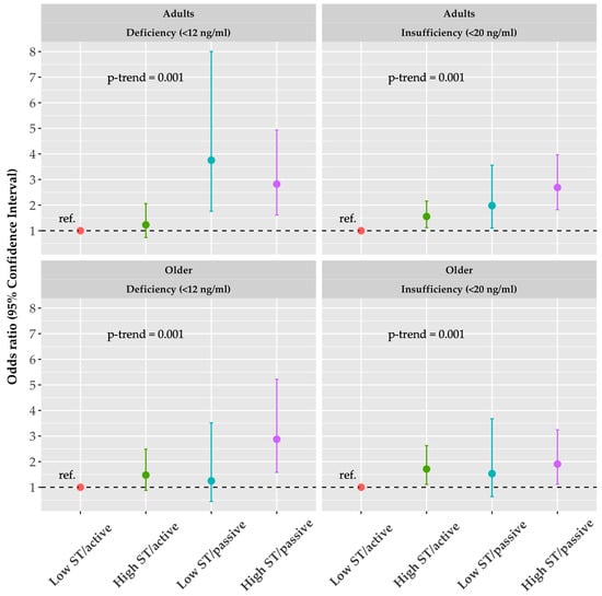 Solis-Urra P, Cristi-Montero C, Romero-Parra J, Zavala-Crichton JP, Saez-Lara MJ, Plaza-Diaz J. Passive Commuting and Higher Sedentary Time Is Associated with Vitamin D Deficiency in Adult and Older Women: Results from Chilean National Health Survey 2016–2017. Nutrients. 2019; 11(2):300. https://doi.org/10.3390/nu11020300