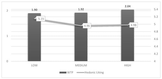 The hypothesis that healthiness plays a pivotal role in judgements of consumers can be further confirmed by the second part of the research. In fact, results from round 2 of the experiment (Expected liking) proved that participants positively responded to health-related information (increasing WTP and liking score), while information on bitterness generates lower preferences. This result is in line with previous research; in fact, literature suggests that consumers use the word bitter with a negative meaning, preferring synonyms in positive contexts [61], therefore, the tested sensory message generated negative expectations in consumers. Meanwhile, the effectiveness of health-related messages in generating positive expectations has already been shown in previous studies [62,63,64]. Especially when healthy goals are very salient in the mind of consumers, they can be willing to compromise taste for healthiness [38,39]. This finding has been reinforced in our study by the estimation of a model which yielded that consumers, after a healthy framing, did raise their WTP in a significant way only for the most bitter product (HIGH).