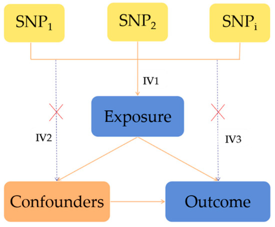 The MR method is based on the following InSIDE hypothesis: Genetic variants are associated with the exposure factor; genetic variants must be not related to any confounding factors that are associated with the outcome; genetic variants must influence the outcome through exposure factors rather than through alternative ways (Figure 1).