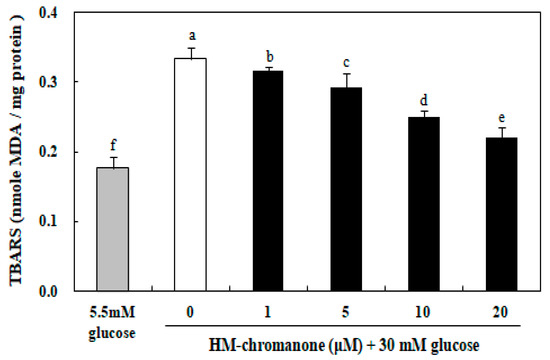 3.4. Effect of HM-Chromanone on Generation of Thiobarbituric Acid Reactive Substances (TBARS)
