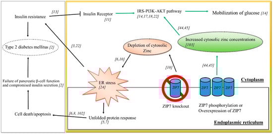 The remainder of this review will address the importance of zinc, ZIP7, ER stress and insulin resistance. Where possible, extrapolation from other zinc transporters will be discussed where there is a direct link between ER stress and/or IR.