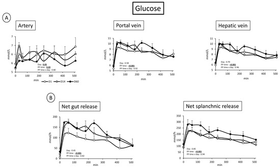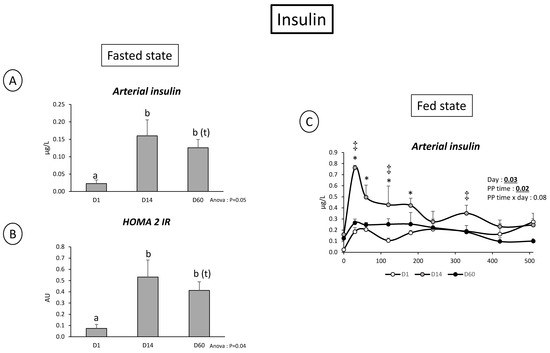 3.2. Overfeeding, Impact on Pigs’ Weight, Insulin Levels, Alteration of Energy Nutrient Concentrations, and Net Splanchnic Uptake in the Fed State. Data Presented in Figure 1, Figure 2, Figure 3, Figure 4, Figure 5 and Figure 6