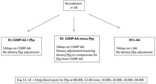 • R3: Subjects took Phe-free l-AA with their usual dietary Phe allowance (Phe-free l-AA).