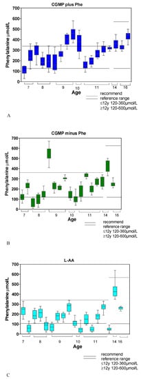 9. MacDonald, A.; Rylance, G.; Hall, S.K.; Asplin, D.; Booth, I.W. Factors affecting the variation in plasma phenylalanine in patients with phenylketonuria on diet. Arch. Dis. Child. 1996, 74, 412–417. [Google Scholar] [CrossRef] [PubMed]