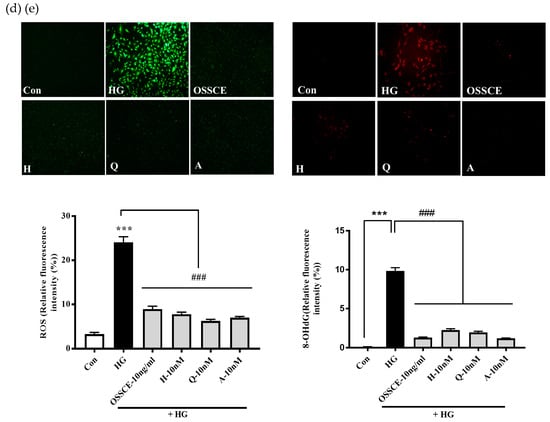3.4. OSSCE and MCs Inhibit HG-induced Intracellular ROS Generation and 8-OHdG Expression in HRMECs
