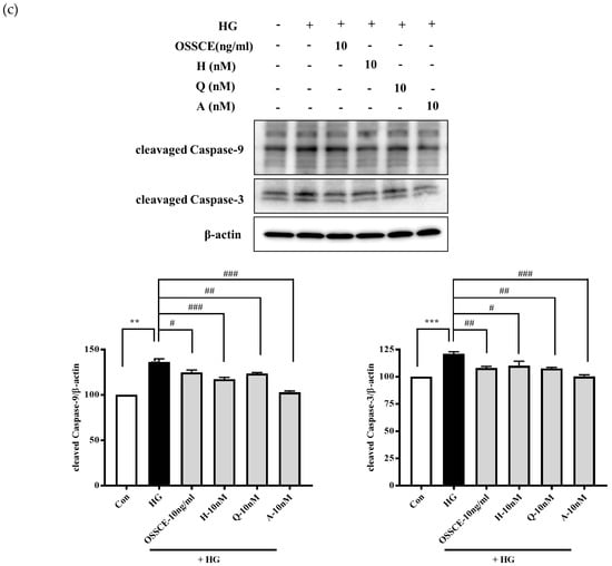 3.6. Effects of OSSCE and MCs on Mitochondria-Dependent Apoptotic Pathways in HG-Treated Hrmecs