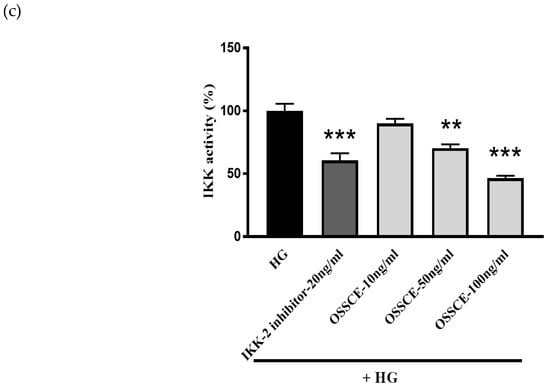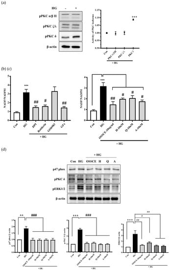 3.8. Effects of OSSCE and MCs on NADPH Oxidase Activity and the Related Signalling Pathways in HG-Treated HRMECs