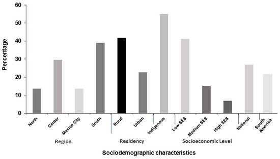 In the early 1990s, a research group at INSP analyzed a National Nutrition Survey conducted in 1988 and described the nutrition conditions of the country at the time. The results showed that Mexico had a much higher prevalence of stunting and anemia, given the size of its economy. One of the reasons for this high prevalence was the profound inequities among different social sectors in Mexico. For example, the prevalence of stunting in children <5 y of age (Figure 2) was 55% in indigenous households, 41.7% in rural areas, 41.2% in the lower socioeconomic tertile, and 39% in the southern region.