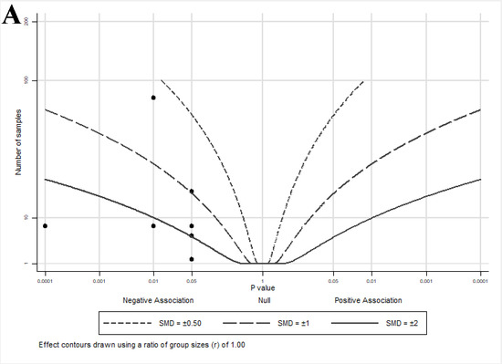 The albatross plot presented in Figure 3B shows a reduction in other androgen-mediated outcomes by lycopene exposure with an SMD of <−3, and one study [40] with an SMD ≈ −2.