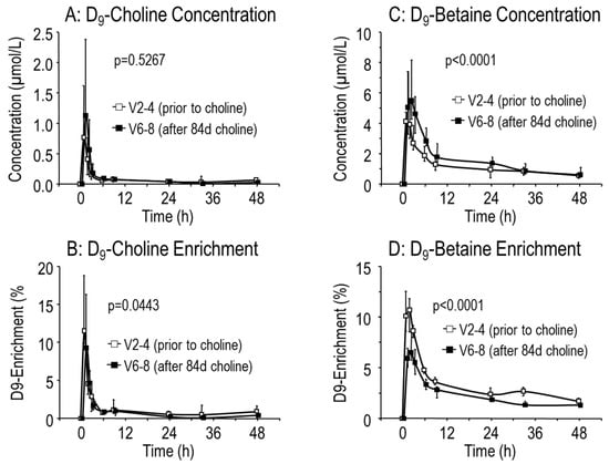 | Plasma D9-PC Concentration 33 h after D9-choline | x | x | |