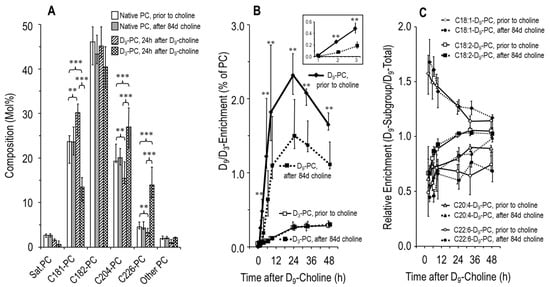 3.3. Effects of Choline Supplementation on Plasma Phosphatidylcholine Metabolism