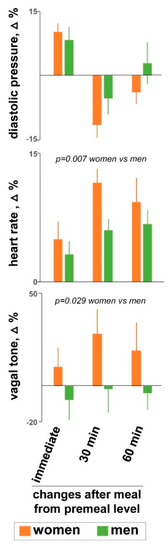 Monrroy, H.; Borghi, G.; Pribic, T.; Galan, C.; Nieto, A.; Amigo, N.; Accarino, A.; Correig, X.; Azpiroz, F. Biological Response to Meal Ingestion: Gender Differences. Nutrients 2019, 11, 702. https://doi.org/10.3390/nu11030702