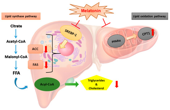 - Pan, M.; Song, Y.L.; Xu, J.M.; Gan, H.Z. Melatonin ameliorates nonalcoholic fatty liver induced by high-fat diet in rats. J. Pineal Res. 2006, 41, 79–84. [Google Scholar] [CrossRef] [PubMed]