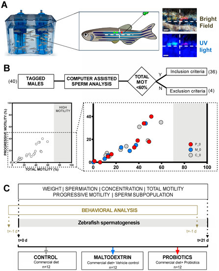 APA StyleValcarce, D. G., Riesco, M. F., Martínez-Vázquez, J. M., & Robles, V. (2019). Diet Supplemented with Antioxidant and Anti-Inflammatory Probiotics Improves Sperm Quality after Only One Spermatogenic Cycle in Zebrafish Model. Nutrients, 11(4), 843. https://doi.org/10.3390/nu11040843