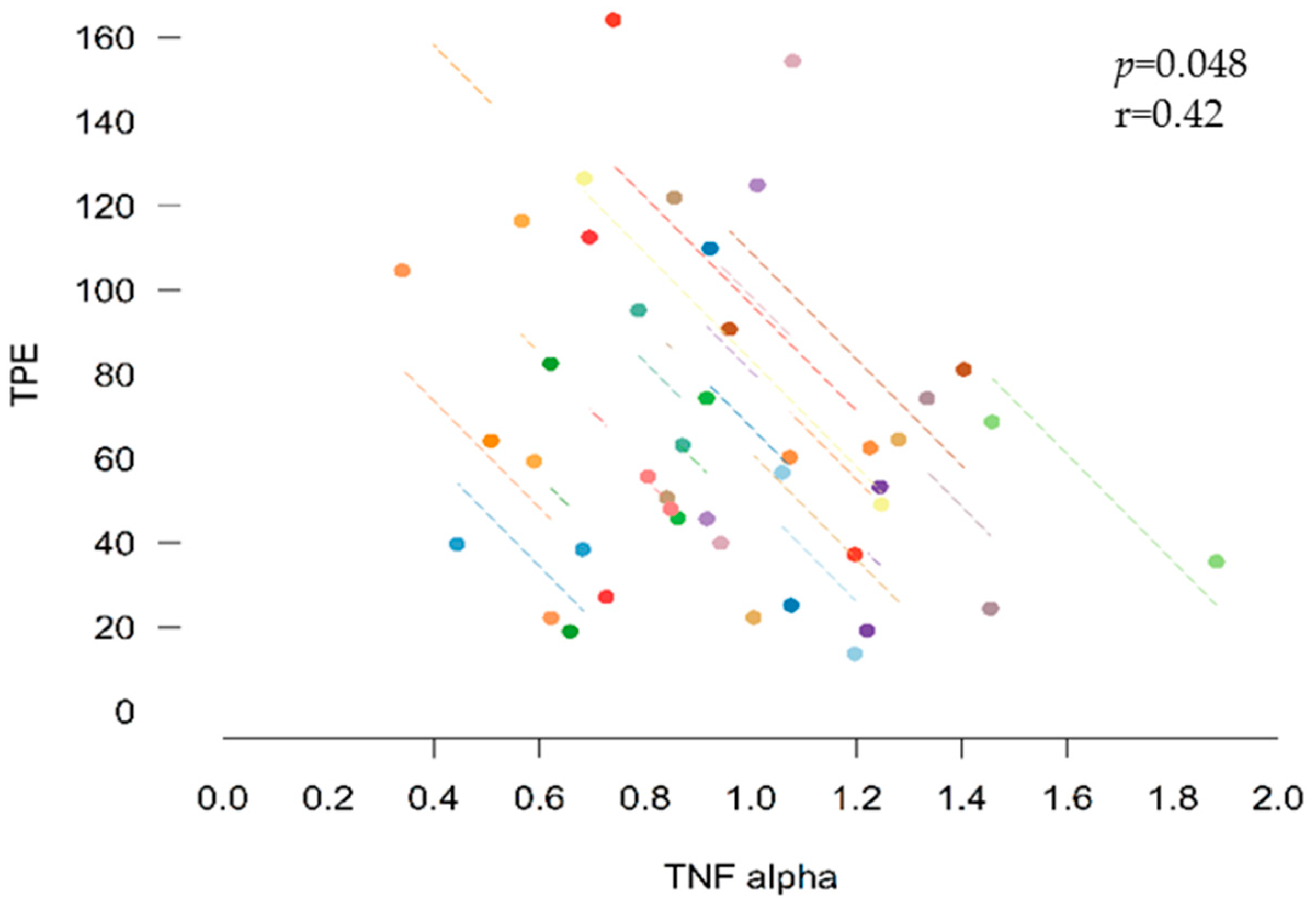 3.6. Correlations between Inflammatory Biomarkers and Bioactive Compounds