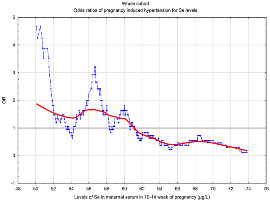 The graphical picture of risk profile of pregnancy-induced hypertension for Se levels in the whole cohort is presented in Figure 1.
