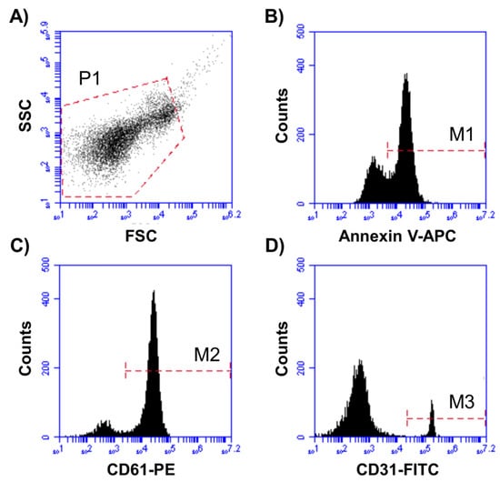 Data were analyzed with BD CSampler software (version 1.0.264.21, Accuri® Cytometers, Inc.). The cMV concentration (number of cMV per µL of plasma) was determined according to Nieuwland’s formula [].