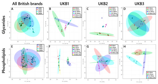 - Uhl, O.; Fleddermann, M.; Hellmuth, C.; Demmelmair, H.; Koletzko, B. Phospholipid species in newborn and 4 month old infants after consumption of different formulas or breast milk. PLoS ONE 2016, 11, e0162040. [Google Scholar] [CrossRef]