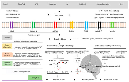 - Khan, M.S.; Ali, T.; Kim, M.W.; Jo, M.H.; Chung, J.I.; Kim, M.O. Anthocyanins Improve Hippocampus-Dependent Memory Function and Prevent Neurodegeneration via JNK/Akt/GSK3beta Signaling in LPS-Treated Adult Mice. Mol. Neurobiol. 2019, 56, 671–687. [Google Scholar] [CrossRef] [PubMed]