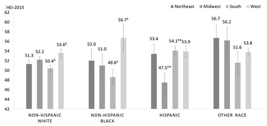 | Hispanic | 2.8 ± 0.2 δ | 2.7 ± 0.1 | 2.5 ± 0.5 | 3.1 ± 0.2 |