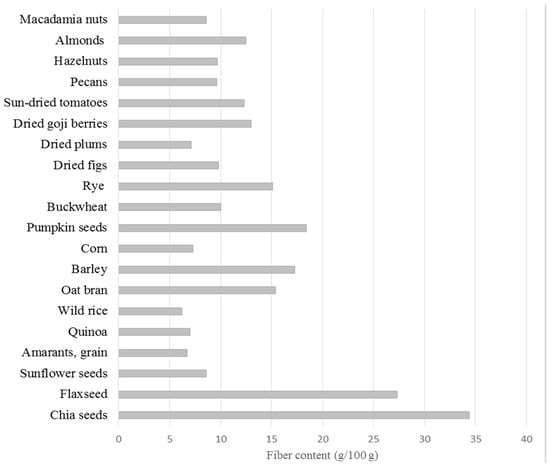 25. Reyes-Caudillo, E.; Tecante, A.; Valdivia-Lopez, M.A. Dietary fibre content and antioxidant activity of phenolic compounds present in Mexican chia (Salvia hispanica L.) seeds. Food Chem. 2008, 107, 656–663. [Google Scholar] [CrossRef]